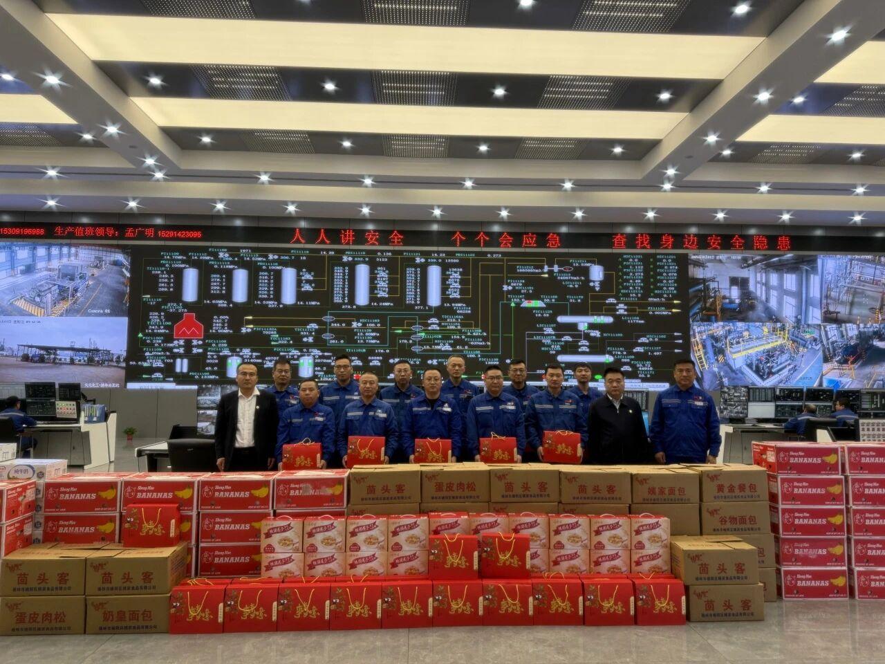 10月6日,天元公司董事、總經(jīng)理喬柏,黨委委員、副總經(jīng)理趙耀飛檢查節(jié)日期間安全生產(chǎn)工作并慰問節(jié)日期間堅(jiān)守崗位的干部職工,為他們送去慰問品。喬柏一行先后前往各生產(chǎn)裝置區(qū)、中心控制室以及職工餐廳,查看節(jié)日期